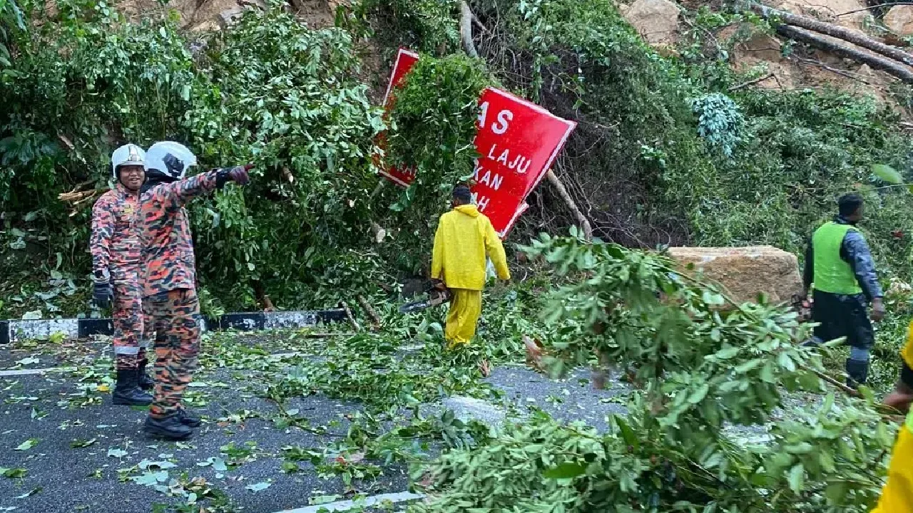 மலேசியாவின் பாலிக் புலாவ் பகுதியில் உள்ள ஜாலான் துன் சார்டோன் சாலையில் ஏற்பட்ட திடீர் நிலச்சரிவு காரணமாகச் சாலை முழுவதுமாக மூடப்பட்டது.