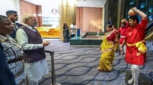 ஆப்பிரிக்காவில் முதன்முறையாக நடைபெற்ற ஜி20 உச்சிமாநாட்டின் தொடக்க அமர்வில் கலந்துகொண்ட பிரதமர் நரேந்திர மோடி, உலகளாவிய வளர்ச்சிக் கட்டமைப்புகளை மறுபரிசீலனை செய்ய அழைப்பு விடுத்ததுடன், அறிவுப் பகிர்வு, திறன் மேம்பாடு மற்றும் பாதுகாப்பு அச்சுறுத்தல்களை எதிர்த்துப் போராடுவது ஆகிய மூன்று முக்கியத் திட்டங்களை வெளியிட்டார்.