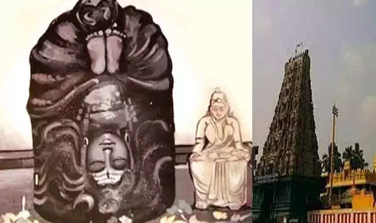 * இங்கே கருவறையில் இறைவன் தலைகீழாய் லிங்கம் இன்றி உருவமாக காட்சி தருகிறார்.